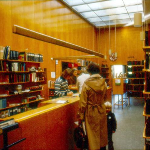 Billedserie fra Nyborg Biblioteks 75-års jubilæum i 1977. På det tidspunkt havde den nye bygning været i brug i 38 år.