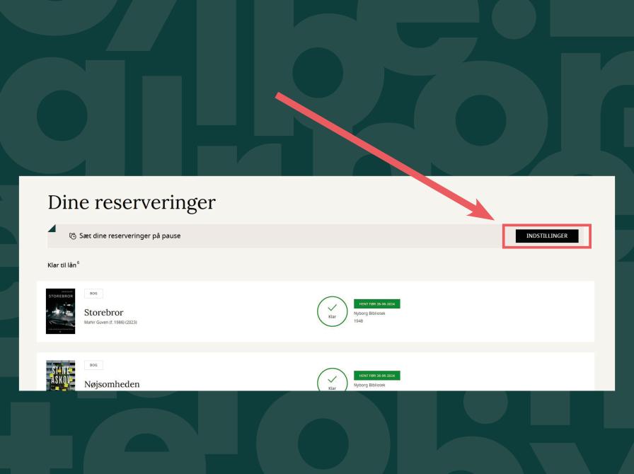 3. - Klik på "Indstillinger" ud for "Sæt dine reserveringer på pause".
