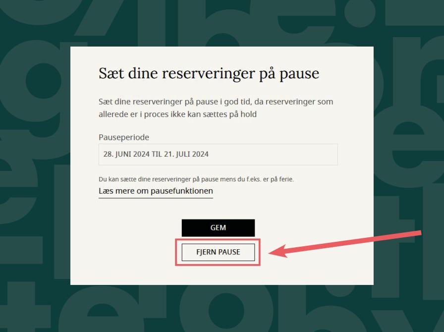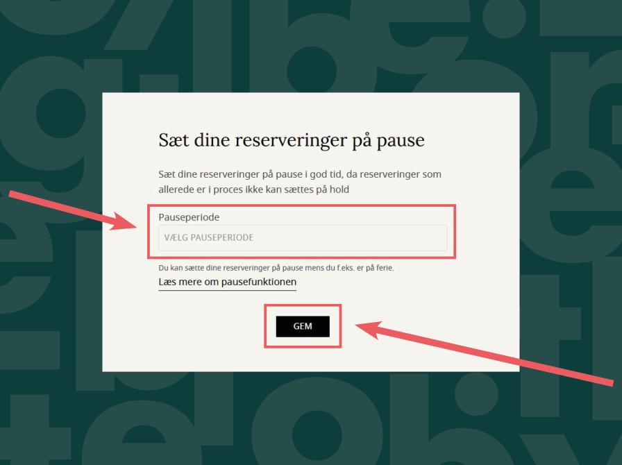 Du kan selv sætte dine reserveringer på pause her på hjemmesiden, ved at følge guiden herunder.